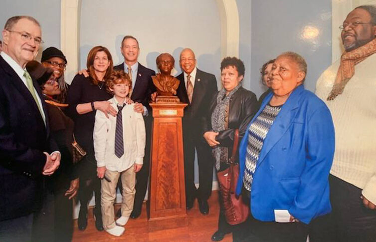 GOV. O’MALLEY AND FAMILY, US CONGRESSMAN ELIJAH CUMMINGS, AND TUBMAN DESCENDANTS AT THE UNVEILING IN THE GOVERNMENT HOUSE, ANNAPOLIS MD.